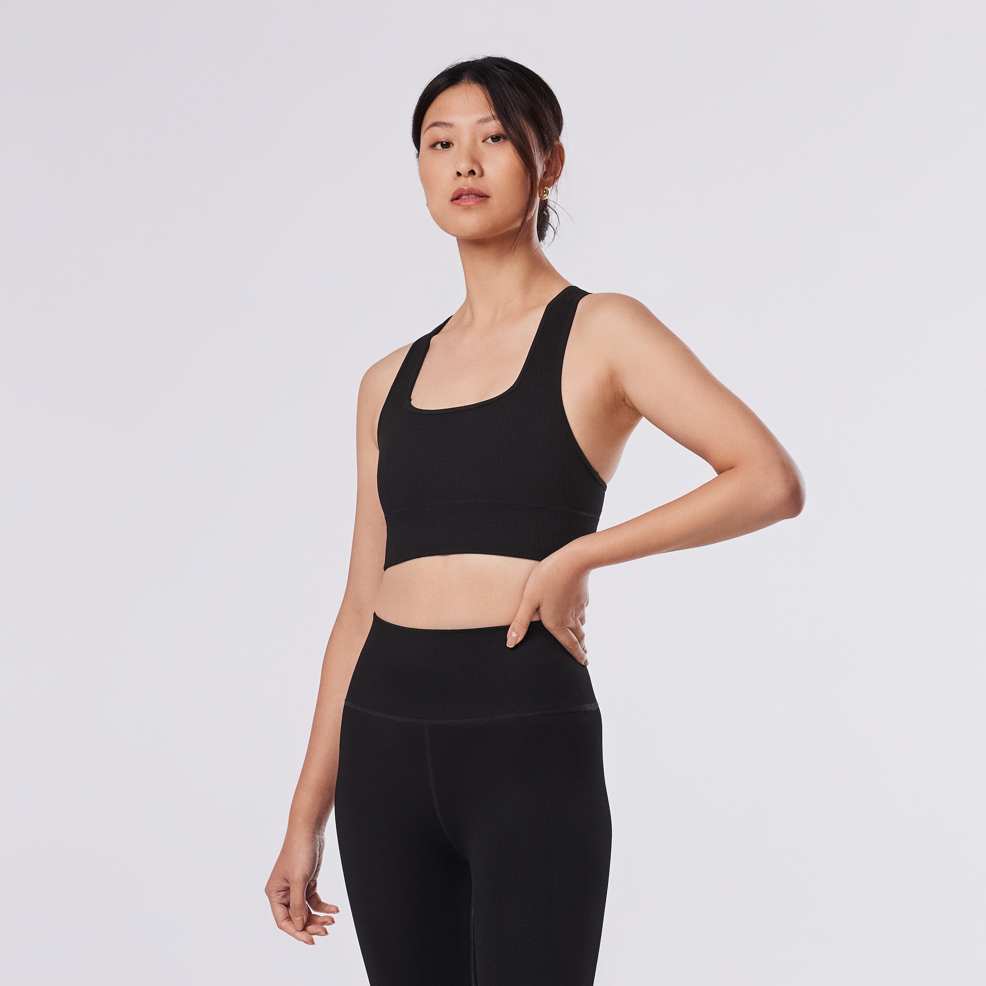 Your low-impact bestie has arrived - the Seamless Racerback Rib Bra. Featuring wide supportive straps, a built-in shelf bra, and sweat-wicking performance, this mid-length style keeps you moving with total freedom.